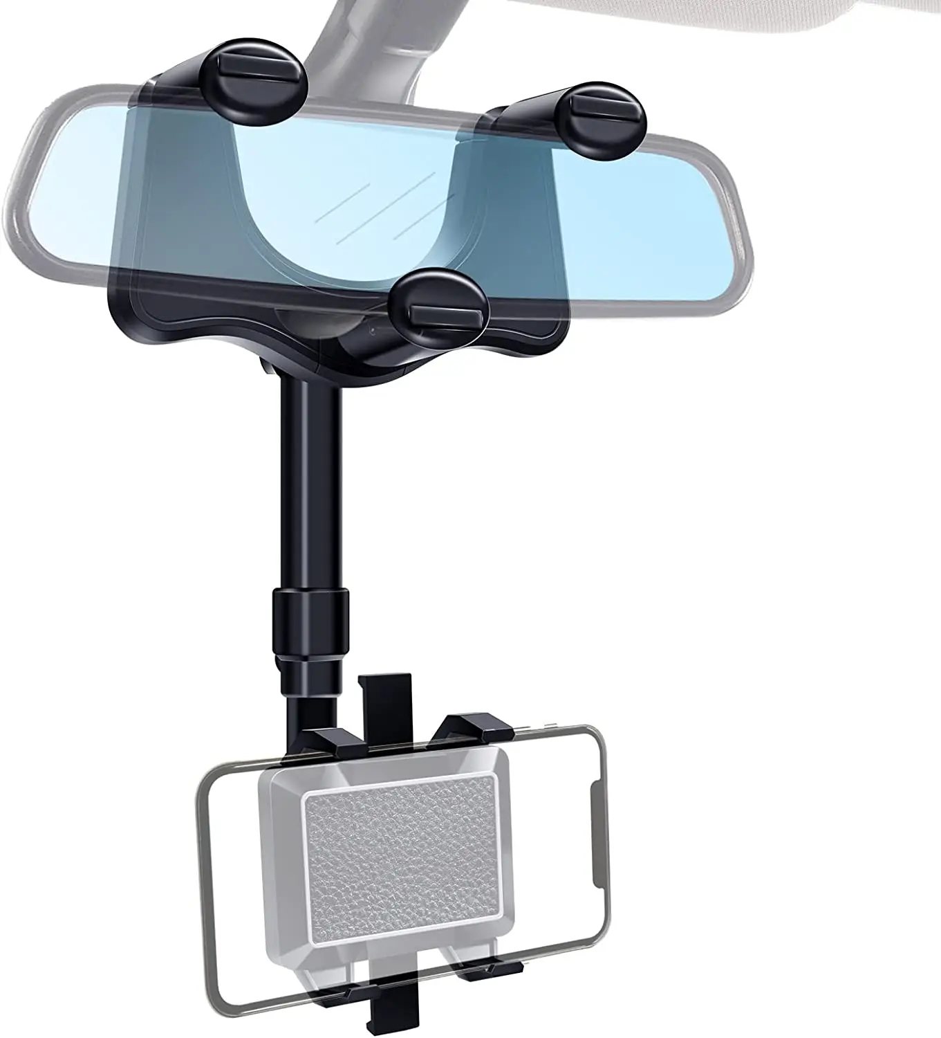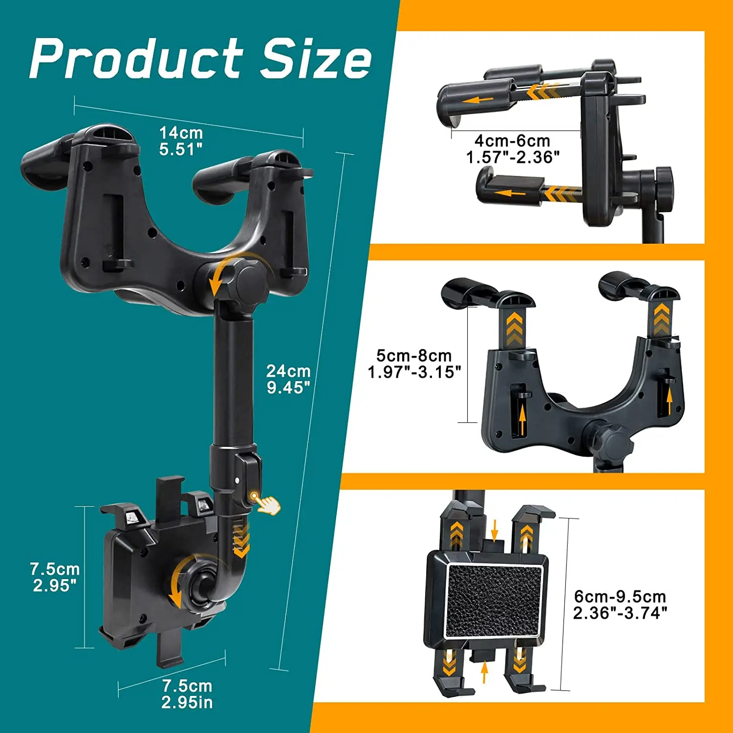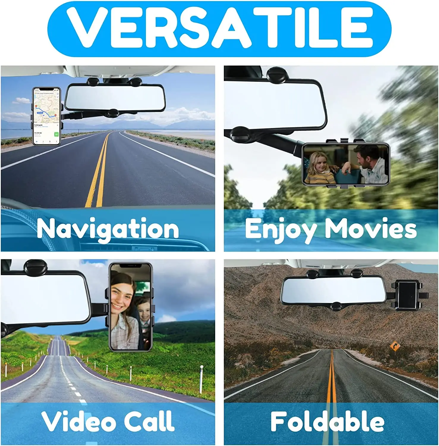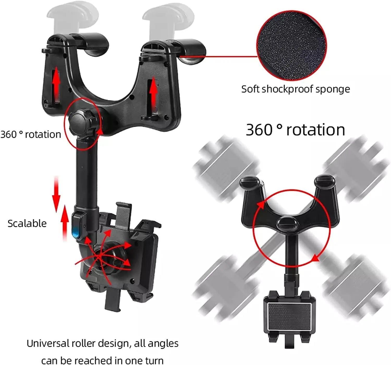 360 Rotatable and Retractable Car Phone Holder, Phone Mount for Car, Universal Car Rearview Mirror Phone Bracket for All Phones
